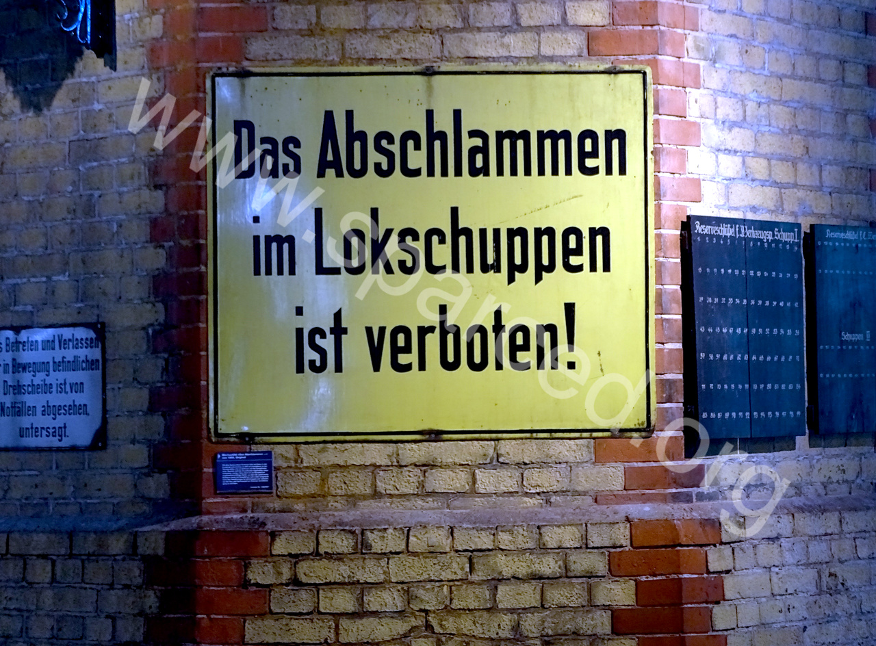 Schild 'Das Abschlammen im Lokschuppen ist verboten'